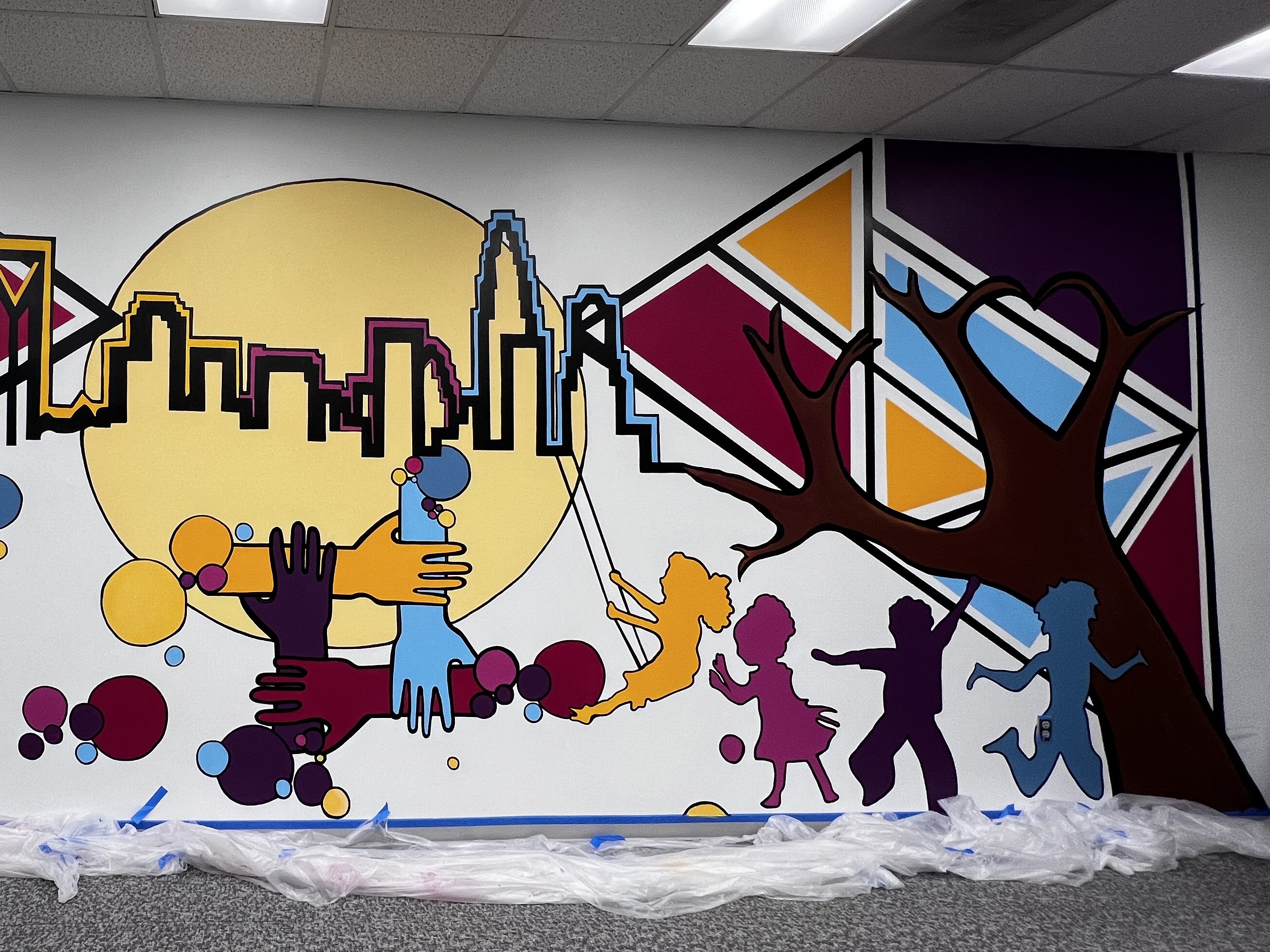 This mural is located inside Northpark OBGYN in Charlotte, NC and it was a truly humbling experience as I used art to promote inclusivity and cultural diversity as well as mental health healing opportunities to underserved populations in our community.