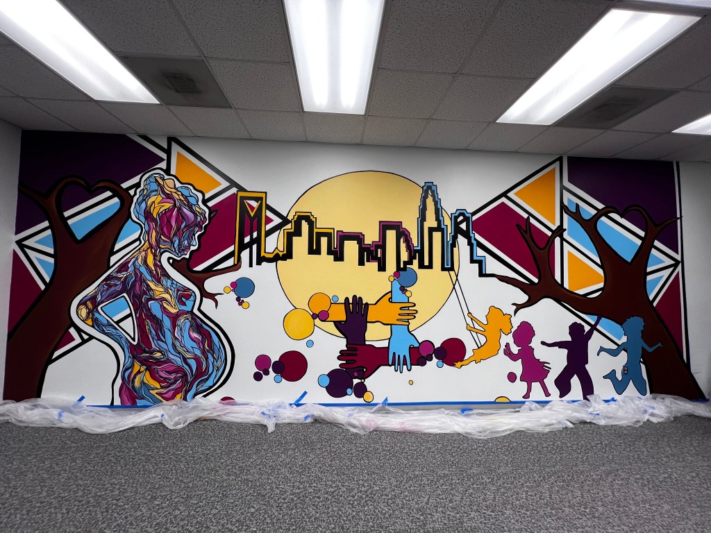 This 9′ x 28′ mural was completed in January 2024 and it was part of a project funded by The City of Charlotte, The Foundation for the Carolinas, and its generous donors through The Infusion Fund grant.